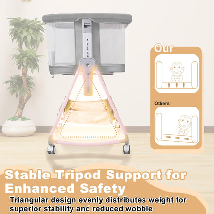 • EASILY TRAVERSE EVERY ROOM: This baby bassinet comes with four quiet and non slip universal wheels, making it easy to push and effortless, allowing you to take your baby to every room. When you cook in the kitchen or read in the living room, your baby can be by your side, suitable for multiple scenarios