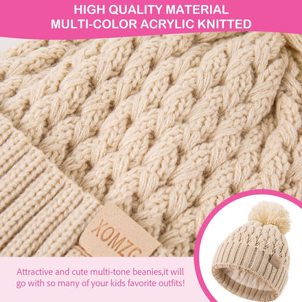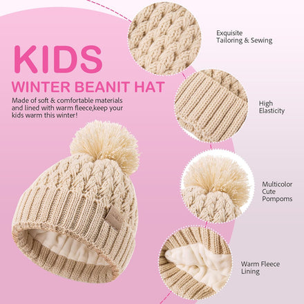 - Quality materials:This beanie hat is made of high quality acrylic knitting yarn.This kind of material thick,breathable and soft,and makes baby's skin not sultry and warm,it won't make the child's scalp prickle.let kids feel comfortable.