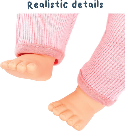 • REALISTIC, SOFT-BODIED BABY DOLL: Adorable, soft-bodied baby doll with lifelike features. Available in 3 different skin tones and eye colors.