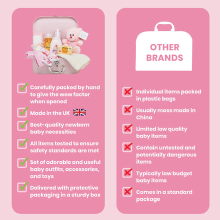 • Constantly Evolving: As a UK family-run business, Baby Box Shop continually expands its range of traditional and modern baby hampers. We provide top choices in unique baby girl gifts and new baby gifts for girls, ensuring you find the perfect gift.