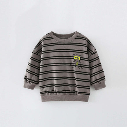 Baby Boy Bear And Striped Pattern Long Sleeve Sweatshirt