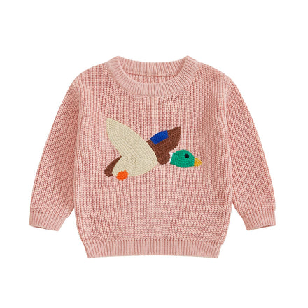 • FASHIOBLE DESIGN: Baby knitted sweater is cute duck embroidery,long sleeves,round neck,loose fit,pretty and fashionable,can make your baby more cute and get more compliments