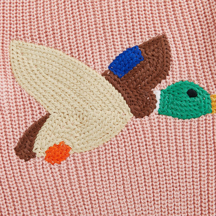 Baby Boy Girl Cute Long Sleeve Duck Embroidery Chunky Knitted Sweater Top Toddler Fall Winter Outfit (Pink Duck, 3-6 Months)