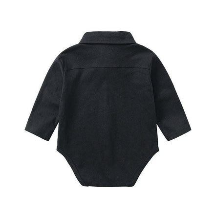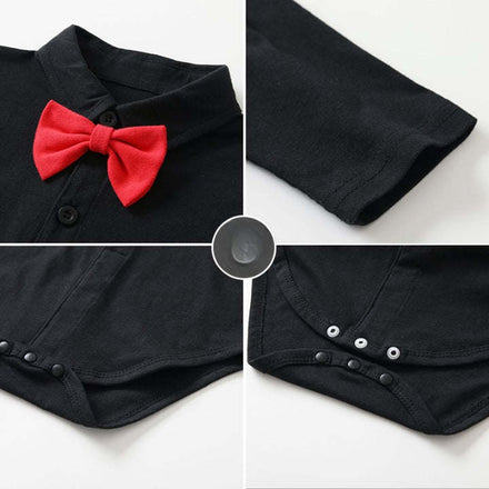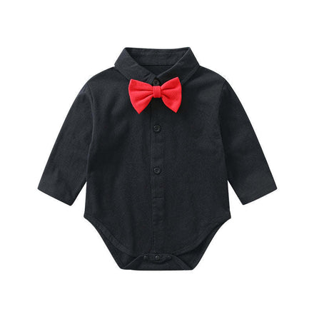 Baby Boy Solid Color Bow Tie Patched Design Long Sleeve Onesies