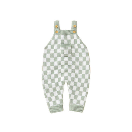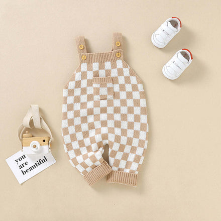 Baby Checkerboard Pattern Strap Design Knit Spring Autumn Rompers