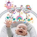 • 【Promote Sense Design】 Our infant stroller toy with cute colorful smiling plush toys will capture your baby's interest to develop their hand, foot, and eye coordination. These bright colors and designs are able to strengthen and develop a baby’s color cognition/vision cognition/hearing development and voice development. The rustling paper and rattle will attract children's attention encouraging baby to reach and grab and awaken muscles