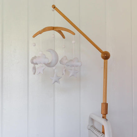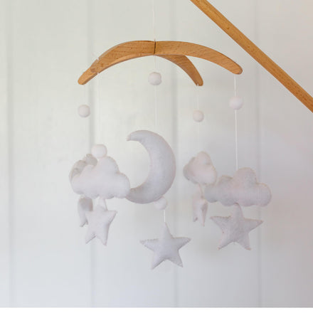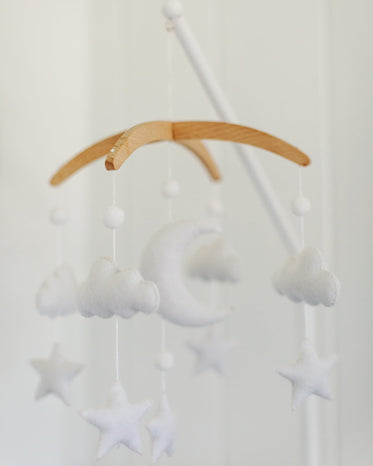 - ☁️ SIMPLE & MODERN - Crafted with a 3-D design, this felt and wood mobile captures attention from both adults and babies. It's an excellent choice for a baby shower, birthday, or registry.