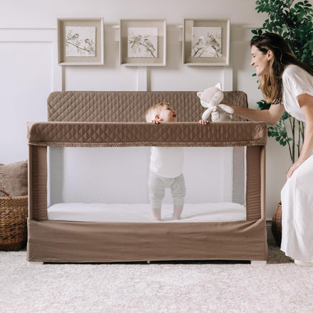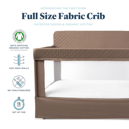 Baby Delight Lunaire Full Size Crib & Playard | Breathable Mesh Baby Crib | Tool-Free Assembly Baby Bed | 100% GOTS Certified Organic Cotton Fabric | Organic Mocha
