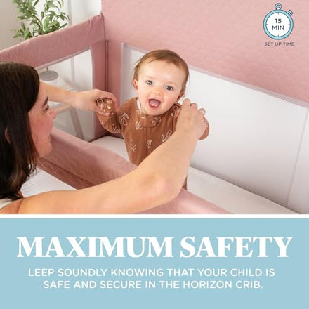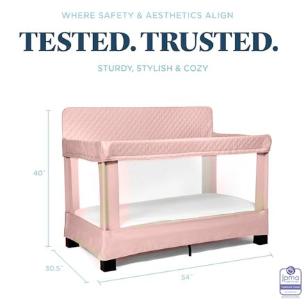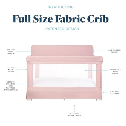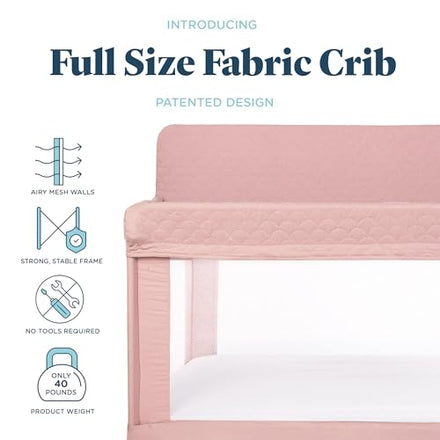 Baby Delight Lunaire Full Size Crib & Playard | Breathable Mesh Baby Crib | Tool-Free Assembly Baby Bed | 100% GOTS Certified Organic Cotton Fabric | Organic Rose