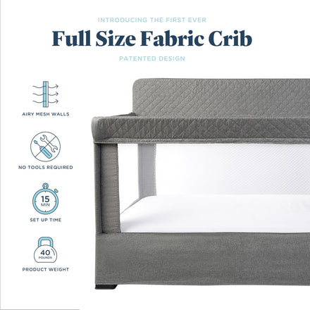 Baby Delight Lunaire Full Size Crib & Playard | Breathable Mesh Baby Crib | Tool-Free Assembly Baby Bed | Charcoal Tweed