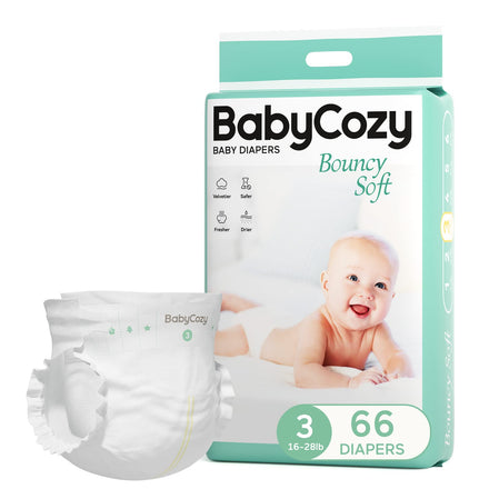Baby Diapers Size 3(16-28lb),66 Count Babycozy Dry Disposable Diapers,Bouncy Soft Diapers Hypoallergenic Without Chlorine, Eco Friendly,Stop Overnight Diapers Leak