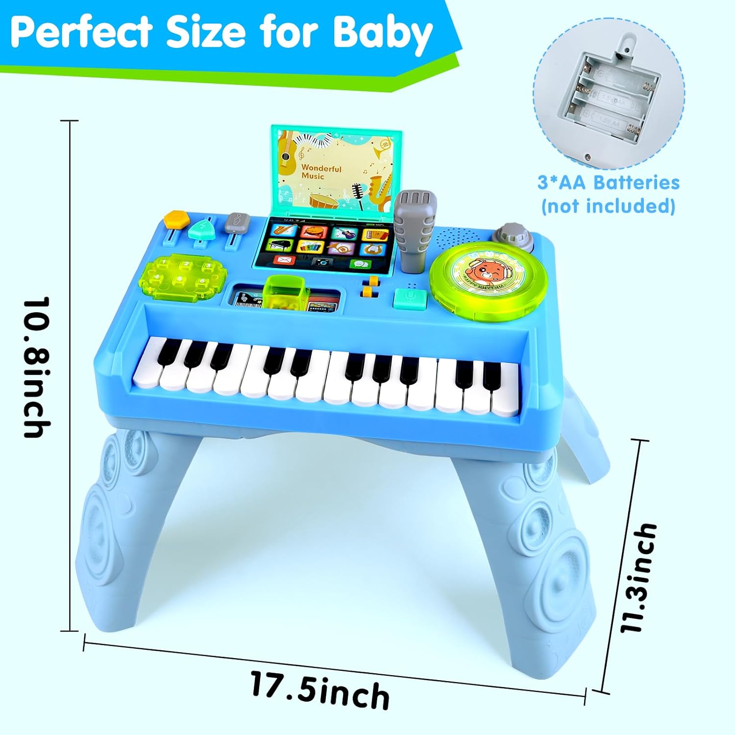 • [Multi-Functional Baby DJ Table with Music and Light] Our DJ table for toddlers 1-3 comes with LED number pad, LED DJ turntable, and 24 piano keys (14 white keys + 10 black keys). It features 3 playing modes, 8 instrument sounds, 3 phone sound effects, plus recording and volume adjustment functions, and a detailed manual is included to explain all features. The bright lights and various sounds will keep toddlers’ attention for long-lasting fun. Fantastic baby christmas gifts 6-12 months.