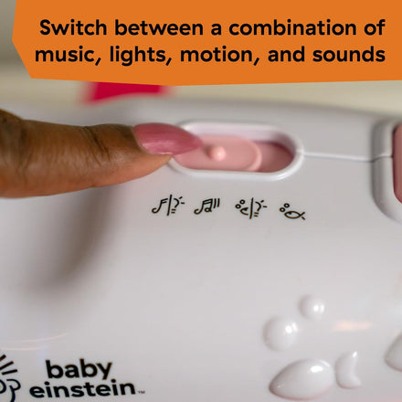 Help your little one sleep soundly with the #1 Baby Einstein Sea Dreams Soother Sleep Soother* in Pink, our best-selling crib soother with thousands of 5-star reviews. A new parent “must have”, this ocean-themed soother has been soothing babies for over 10 years with 25+ minutes of gentle melodies, soft ocean sounds, and twinkling lights. Attach easily to most crib rails or place on a bedside table to help soothe babies 0 months and up. 4 modes let parents customize settings to meet baby’s needs, with relaxing combinations of soft lights, serene music, soothing ocean sounds, and characters that gently sway to relax baby during quiet time or sleep. Parents will love this soother’s Drift Off function, which gradually softens the lights and sounds every 10 minutes to help baby fall asleep. To prevent wakeups, use the remote control to activate or stop the soother from up to 12 feet away. Dimensions: 8.7 x 11.9 x 5.22 inches. Wipes clean. Remore requires 2 AAA batteries (not included). Soother requires 4 C batteries (not included). (*Circana, Retail Tracking Service, Other Infant Toys, U.S. dollar sales, April 2023 - March 2024 combined)