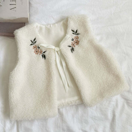 Baby Floral Embroidered Pattern Lamb Wool Vest Jacket