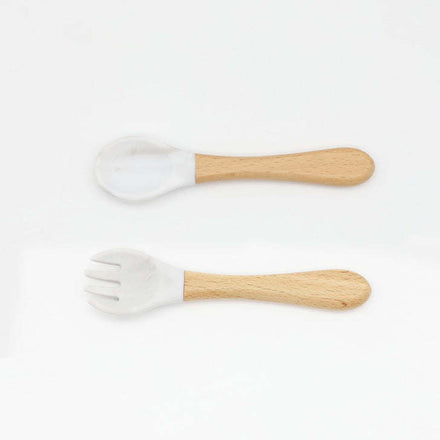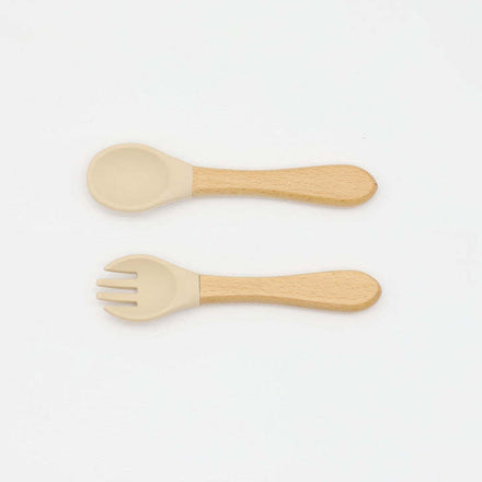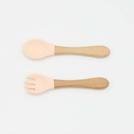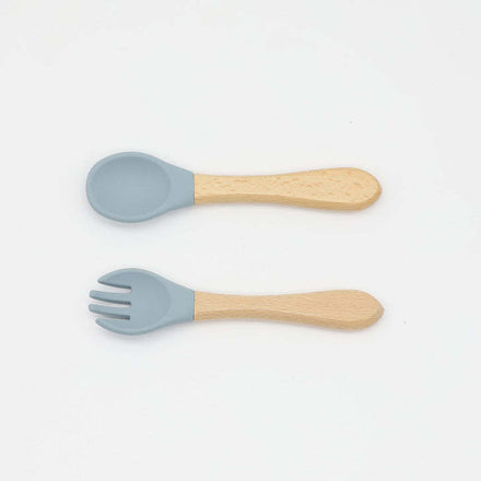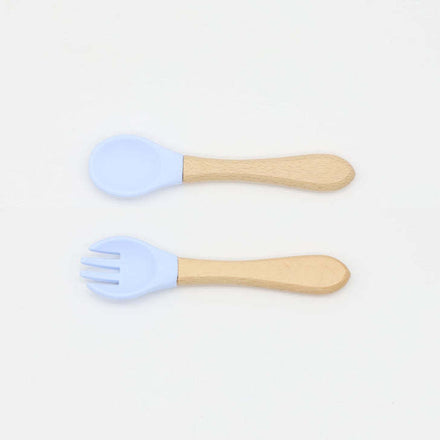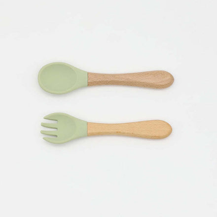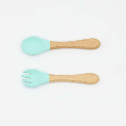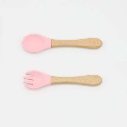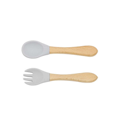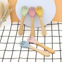Baby Food Grade Wooden Handles Silicone Spoon Fork Cutlery