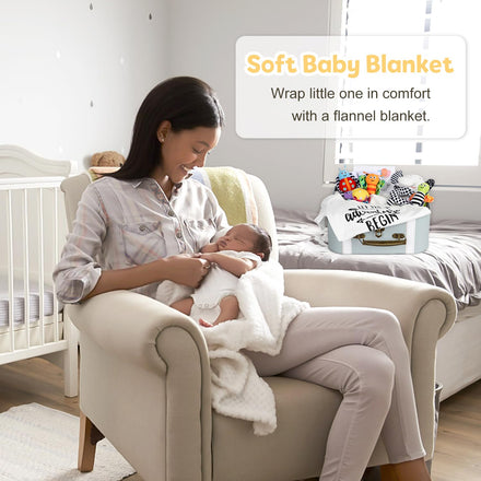 Baby Gift Set, Baby Shower Gifts, Black and White High Contrast Baby Toys 0-6 Months for Newborn Essentials Infant Rattle Socks Elephant Toys Blanket Onesies Baby Gift Basket for Girls Boys
