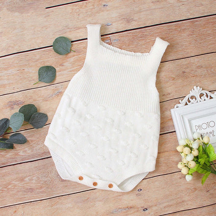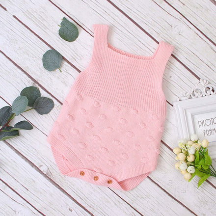 Baby Girl 1pcs Round Point Patched Design Sleeveless Knitted Onesies Bodysuit