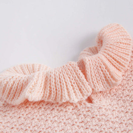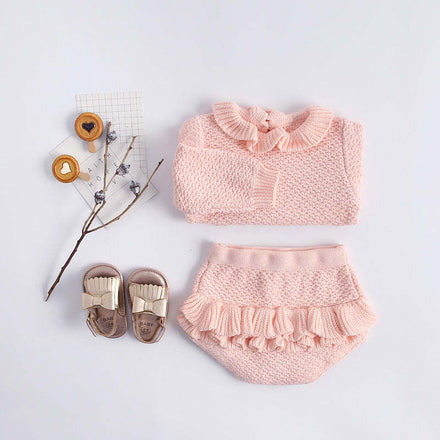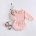 Baby Girl 1pcs Ruffle Neck Solid Shirts And Belted Triangle Shorts Fall Winter Knit Sets