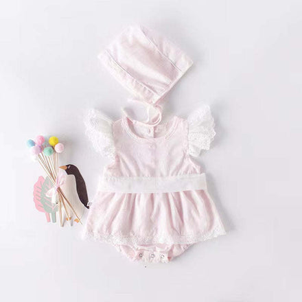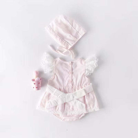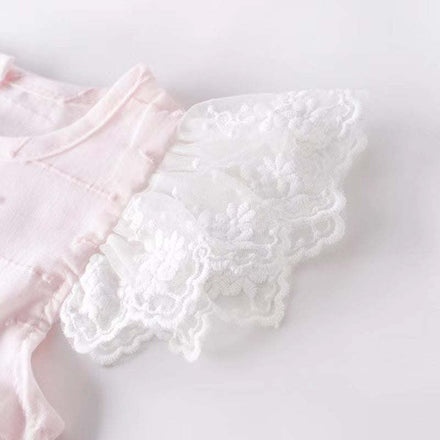 Baby Girl Belted Bow Tie Design Mesh Butterfly Sleeve Princess Onesies