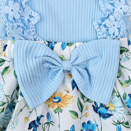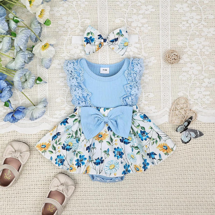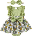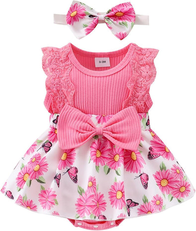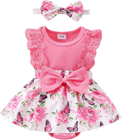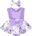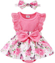 • Unique Design: This baby girl romper dress features lace on the shoulder, a floral print skirt, and a cute bow at the waist, making your baby girl look like a princess. It comes with a headband to complete the look.