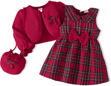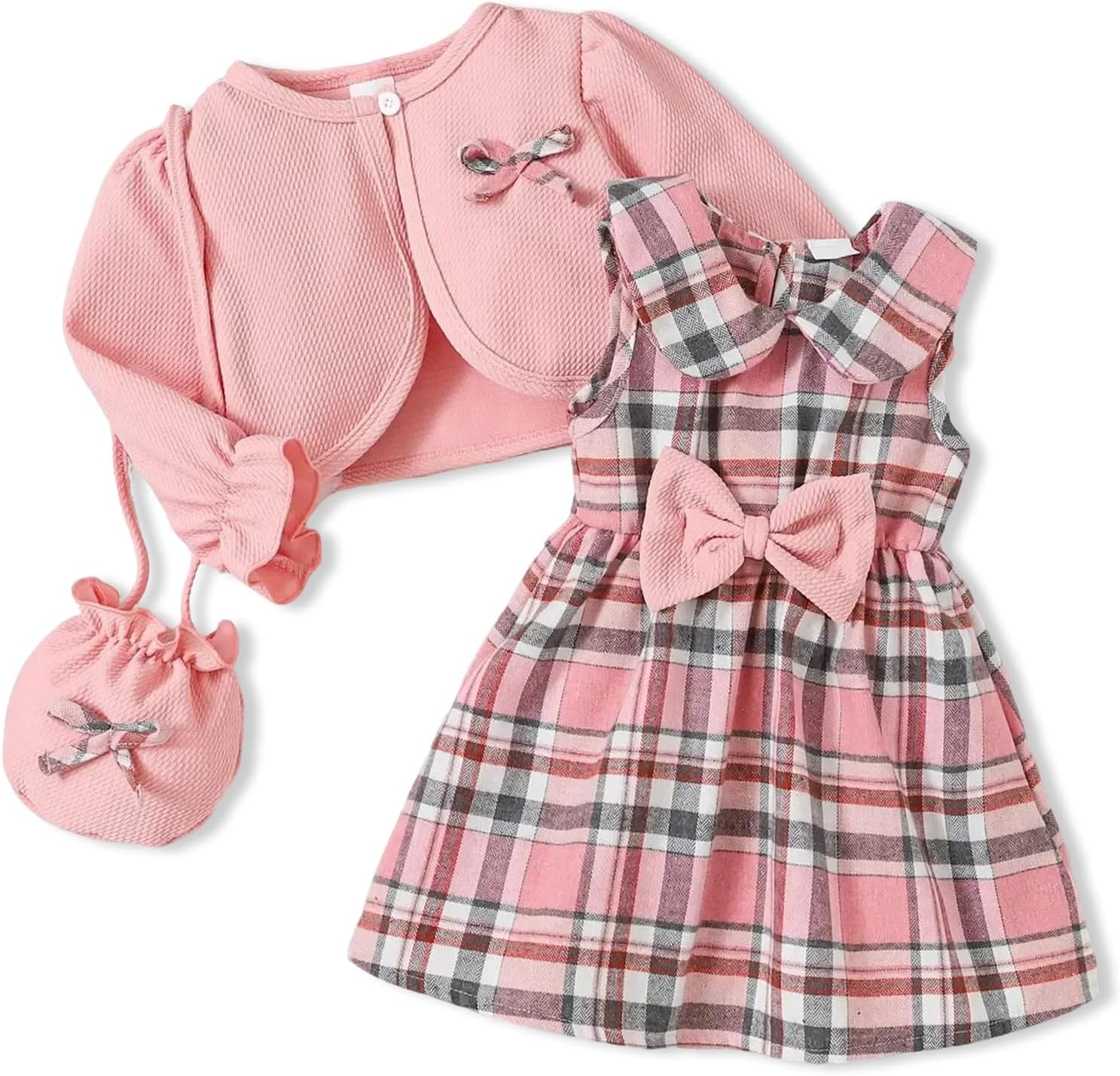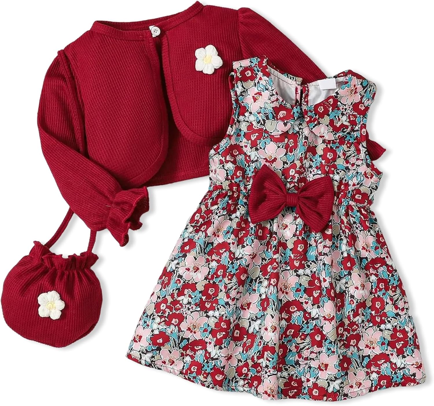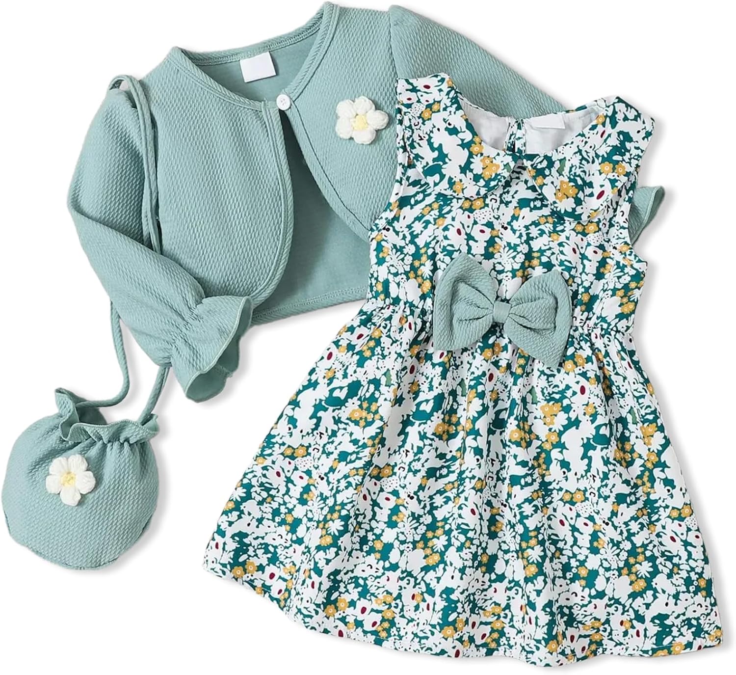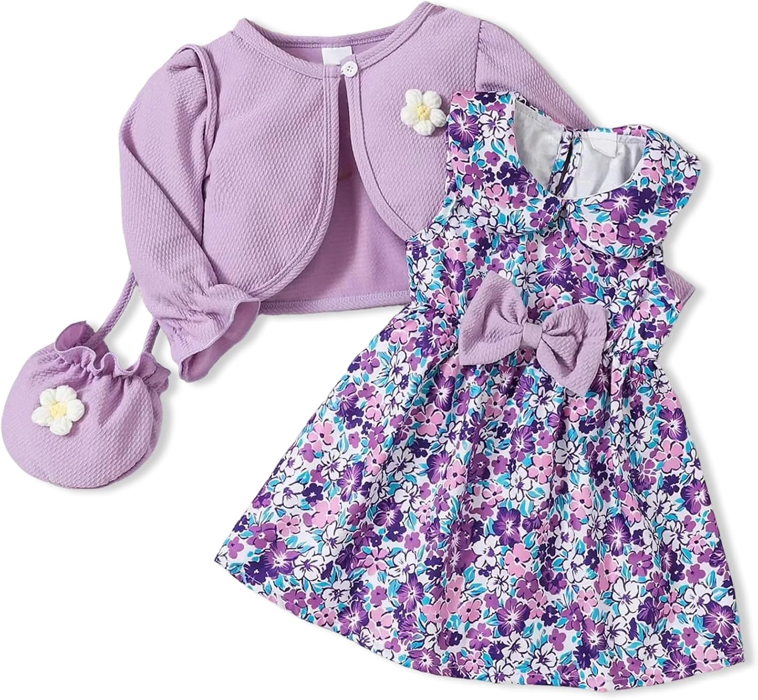 • Fashionable 3-Piece Dress Set: Cozy yet light toddler dress and cardigan combo with a matching cute bag. Fine craftsmanship, smooth fabric, gentle on skin, offers your little girl a soft, comfortable fit. Ideal for all seasons—spring, summer, fall, and winter.