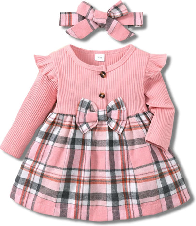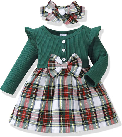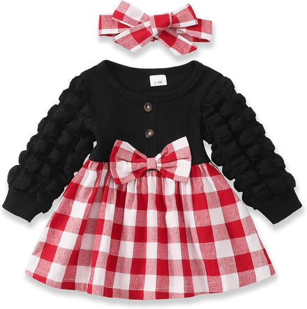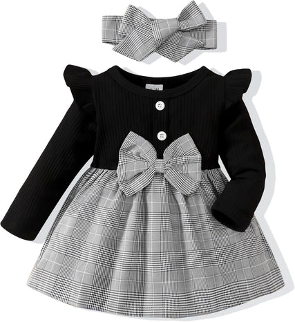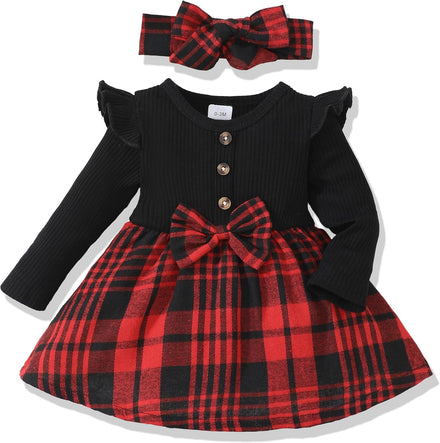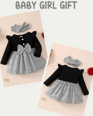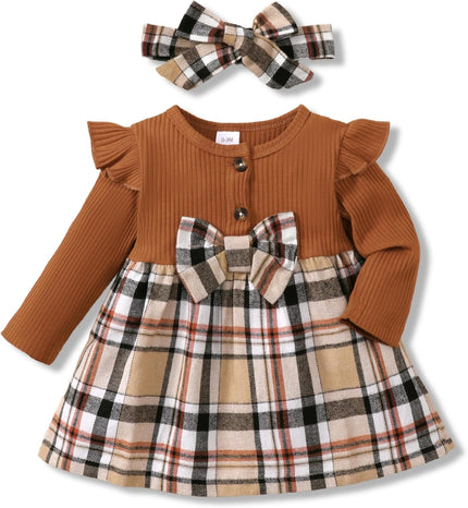 - Fashion Design: Our baby girl outfits is designed with a ribbed plaid dress and cute headband that will make your infant girls look cute.