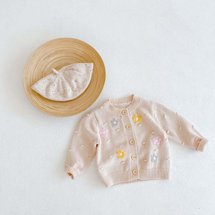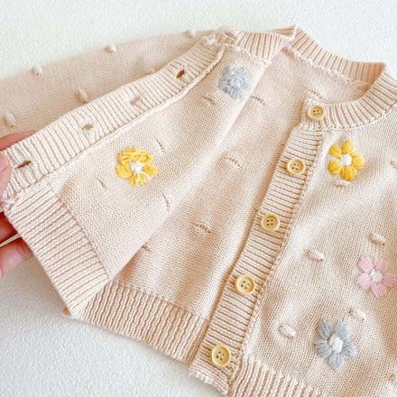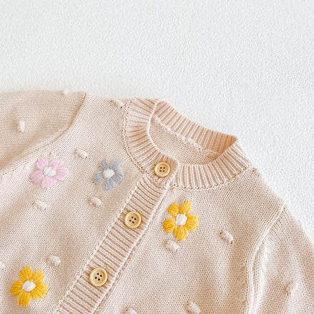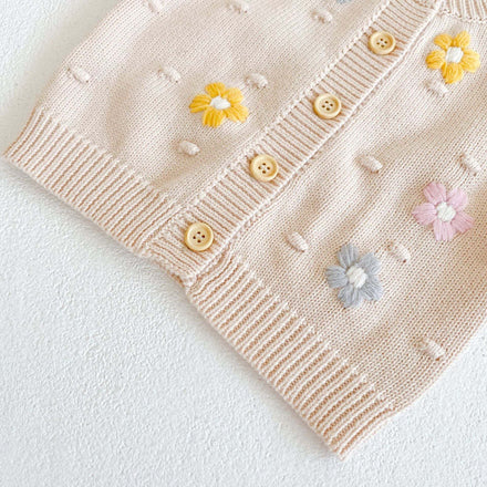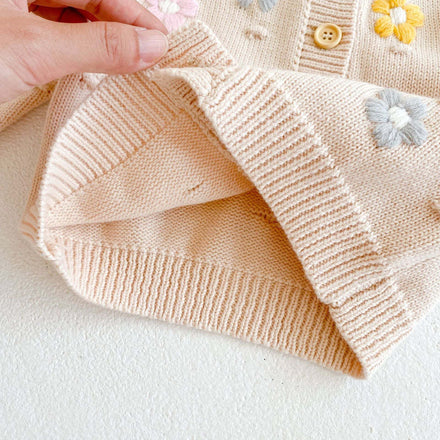 Baby Girl Floral Embroidered Graphic Button Front Design Knitted Cardigan