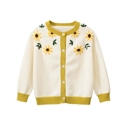 Baby Girl Floral Embroidered Pattern Simple Colorblock Design Knitwear