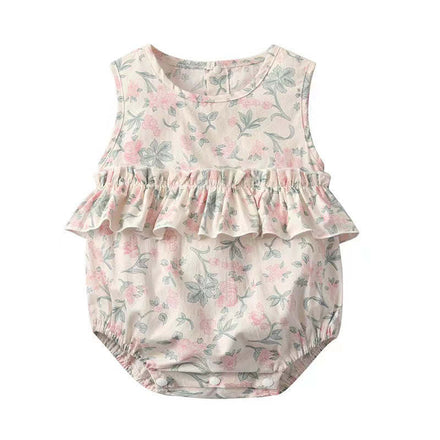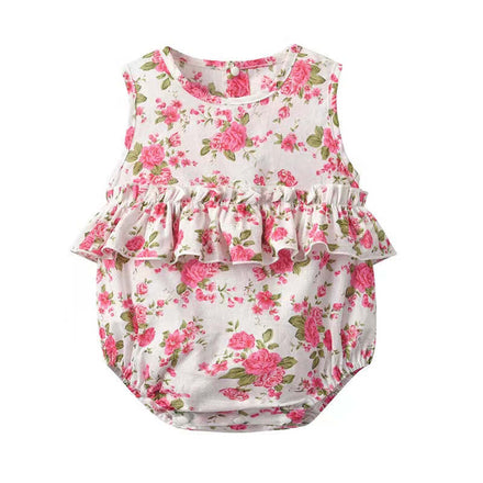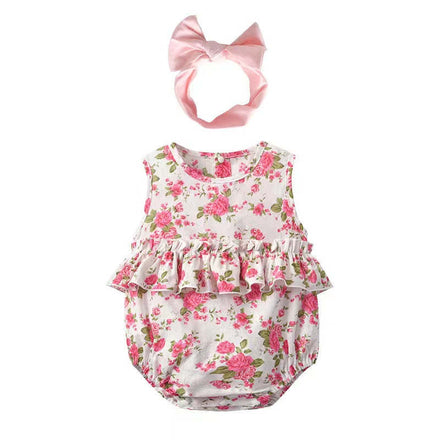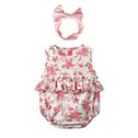 Baby Girl Floral Print Graphic Ruffle Design Sleeveless Onesies & Headband