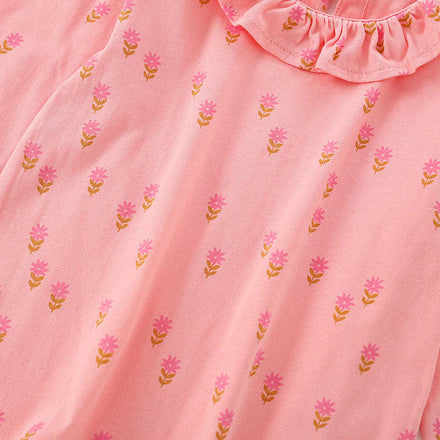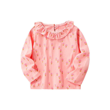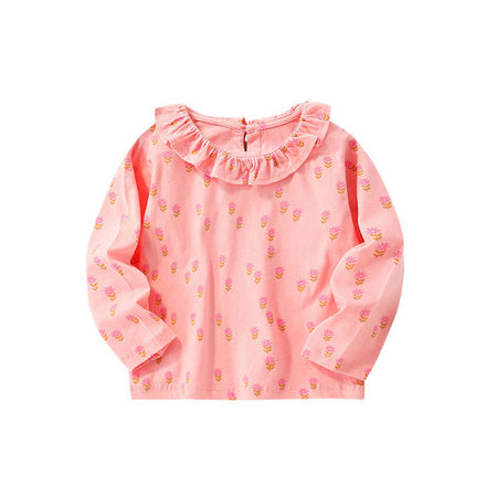 Baby Girl Floral Print Pattern Ruffle Collar Cotton Shirt