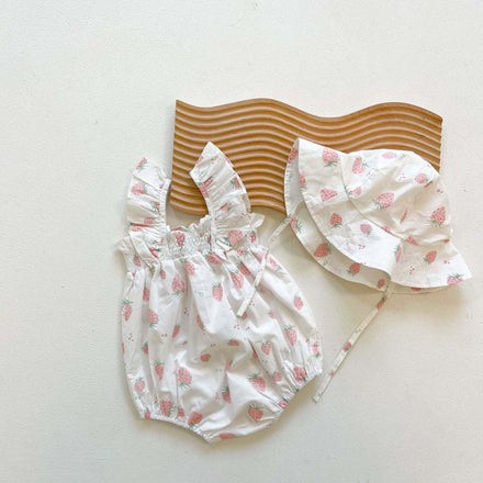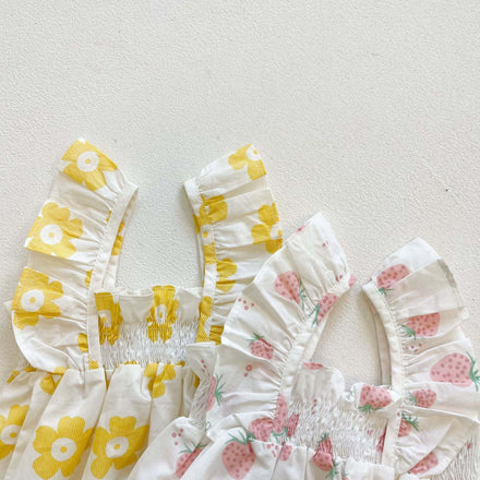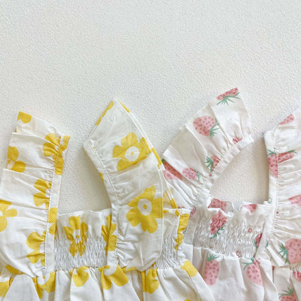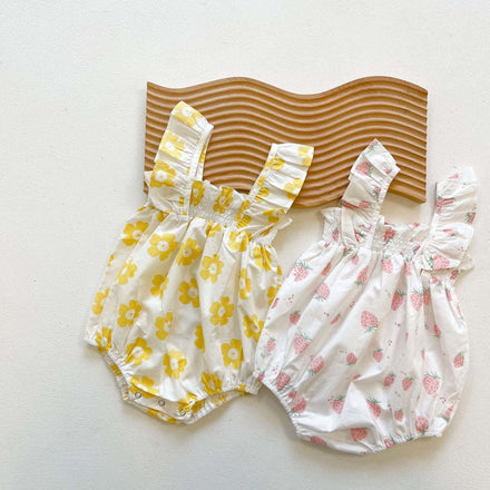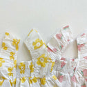 Baby Girl Floral Print Ruffle Design Sleeveless Crotch Onesies Bodysuit