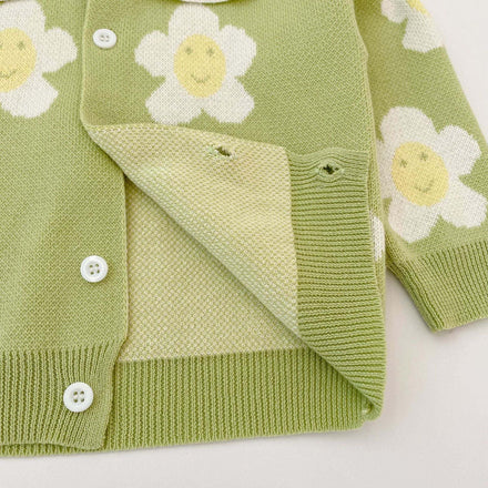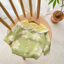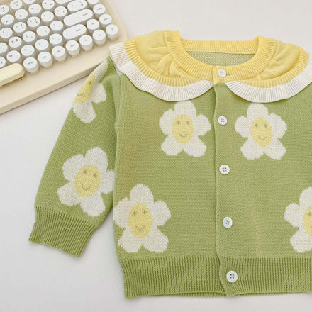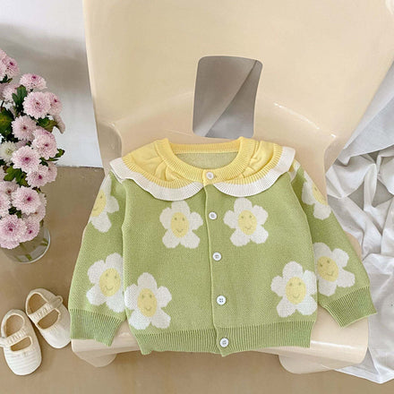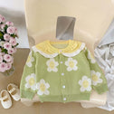 Baby Girl Flower Pattern Colorblock Design Knit Cardigan