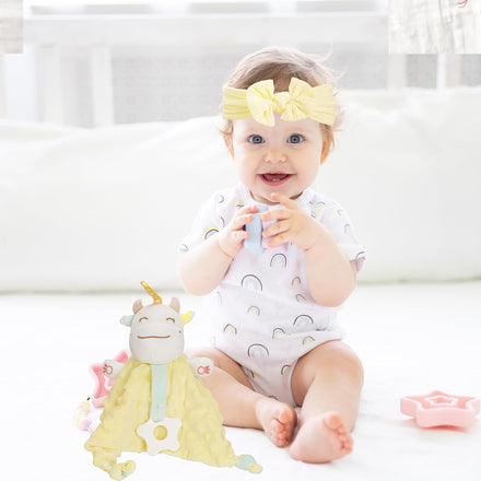 • 【RATTLES AND CALF SAFETY BLANKET】Our wooden rabbit drum is made of natural beech, free of paint and burrs, with smooth edges, making it the perfect grip toy for young children. It can help babies learn to grip and shake, and enhance hand eye coordination. Bull safety blankets can provide entertainment and stimulate the baby's auditory and visual senses. These are the best toys for parents and babies to interact with.