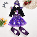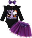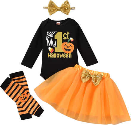 • 🎃Design: Long sleeves, Stretchy Chiffon Tutu Skirt, ruffled shoulders, letters "my 22st Halloween " printed, snap closures at bottom for easy diaper changing. Skirt Features Elastic Waistband And Sequins Bowknot Decoration. Fairy Girl Flower Girl Dress Tulle Chiffon. Tutu Skirt is Orange,Fit the Halloween Atmosphere. Striped Leg Warmers for Baby Girls with.
