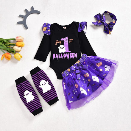 Baby Girl Halloween Costumes My 1st Halloween Outfits Romper+ Tutu Skirt+ Striated Leg Warmer+ Bunny Headband Outfit Set