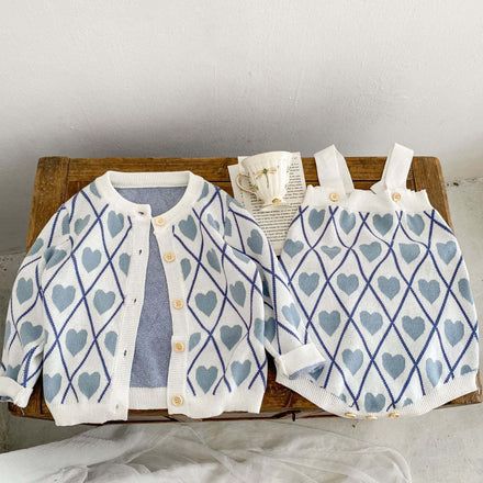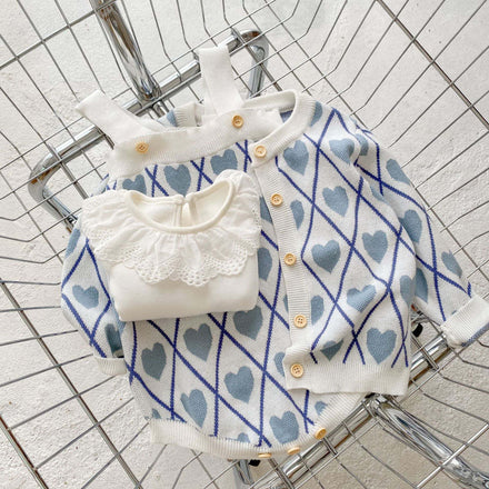 Baby Girl Heart Embroidered Pattern Spring Latest Style Onesies & Cardigan
