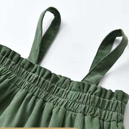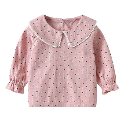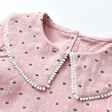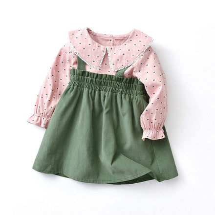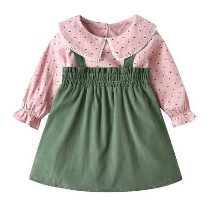 Baby Girl Polka Dot Pattern Lapel Shirt Combo Solid Strap Dress Literary Style Sets