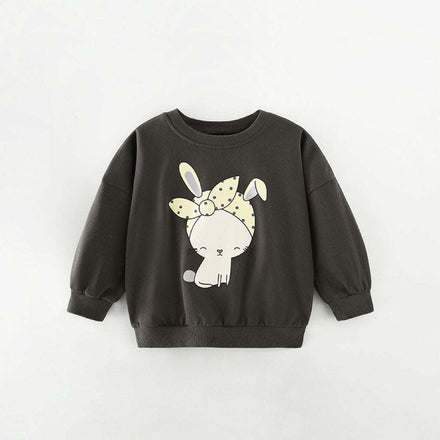 Baby Girl Rabbit Graphic Long Sleeve Cotton Sweatshirt