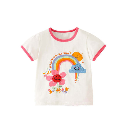 Baby Girl Rainbow Pattern Patched Design Colorblock T-Shirt