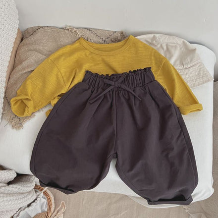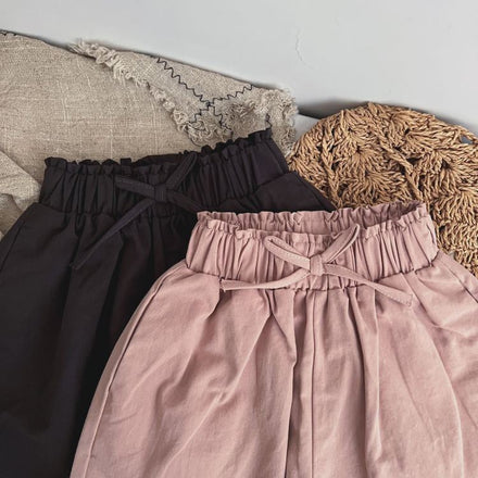 Baby Girl Solid Color Bow Decoration Design Long Pants