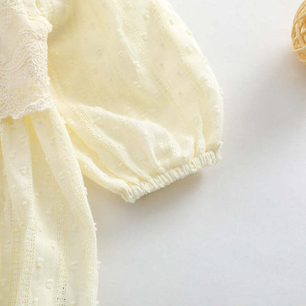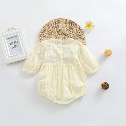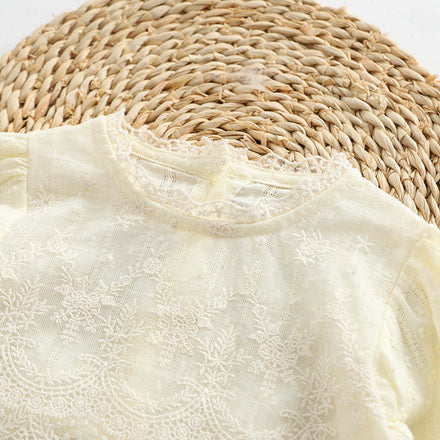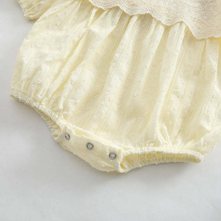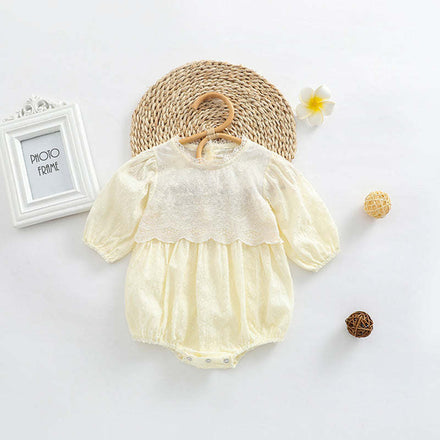 Baby Girl Solid Color Lace Design Long Sleeve Onesie