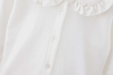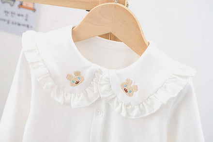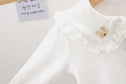 Baby Girl Solid Color Rabbit Print Single Breasted Design Doll-Neck Long-Slleved Shirt