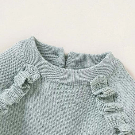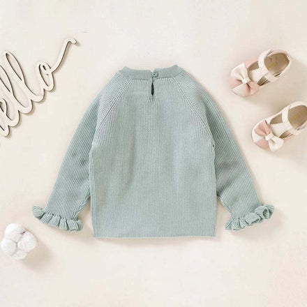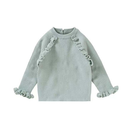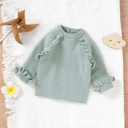 Baby Girl Solid Color Ruffle Design Long Sleeved Pullover Sweater