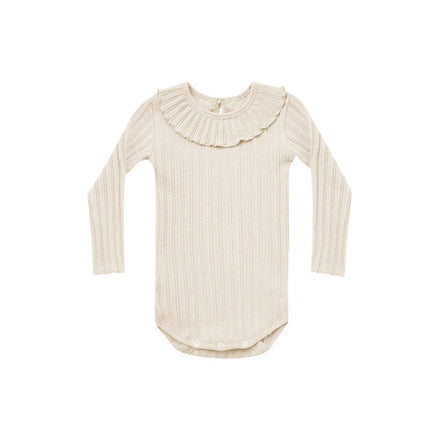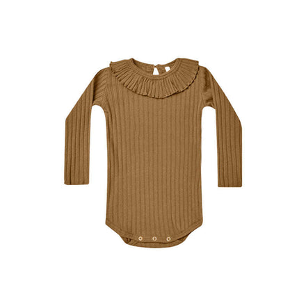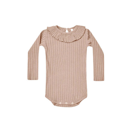 Baby Girl Solid Color Ruffle Neck Long Sleeve Knit Onesies