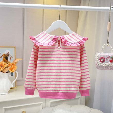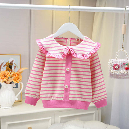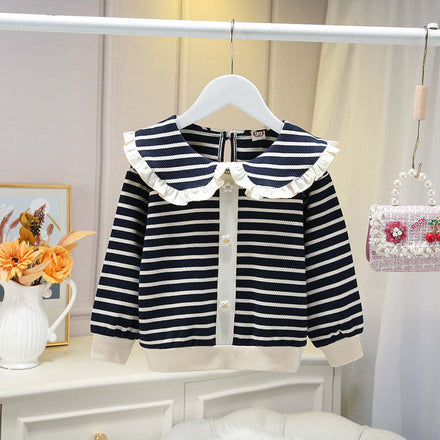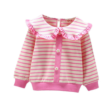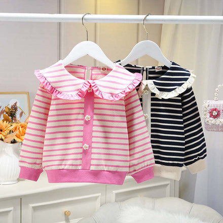 Baby Girl Striped Pattern Flower Patched Design Korean Style Coat