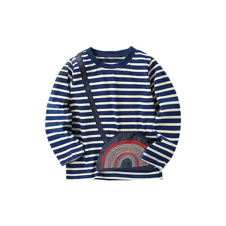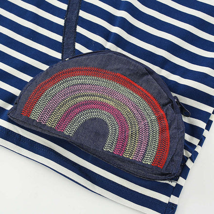 Baby Girl Striped Pattern Rainbow Embroidered Design Shirt