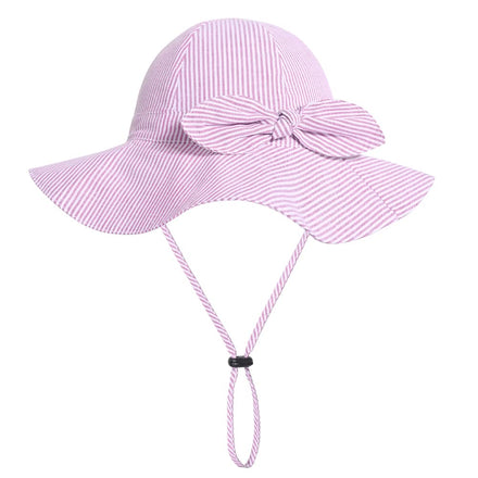 Baby Girl Sun Hat with UPF 50+ Outdoor Adjustable Beach Hat with Wide Brim Bucket Hats (12-24 Months,Purple-Stripe 1pcs)