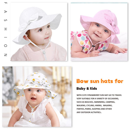 • FASHIONABLE: Wide brim baby sun protection hat with bow tie is the perfect accessory for you. Comfortable, extra soft lining & patterned design, perfect for all day wear.Breathable material keeps baby cool.