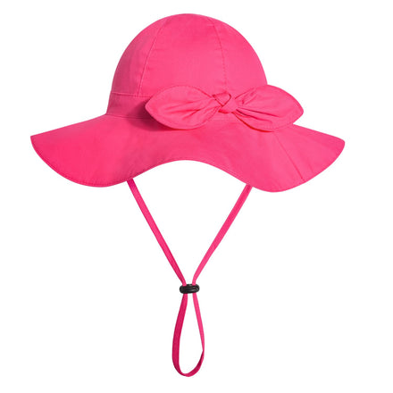 Baby Girl Sun Hat with UPF 50+ Outdoor Adjustable Beach Hat with Wide Brim Bucket Hats (12-24 Months, Rose-red)