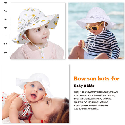 • FASHIONABLE: Wide brim baby sun protection hat with bow tie is the perfect accessory for you. Comfortable, extra soft lining & patterned design, perfect for all day wear.Breathable material keeps baby cool.